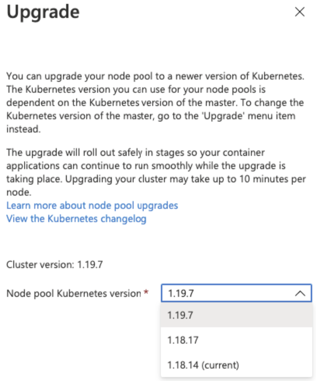 Under “Cluster configuration” in your AKS console, define the Kubernetes version you want to upgrade to and click Save.